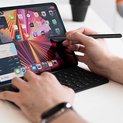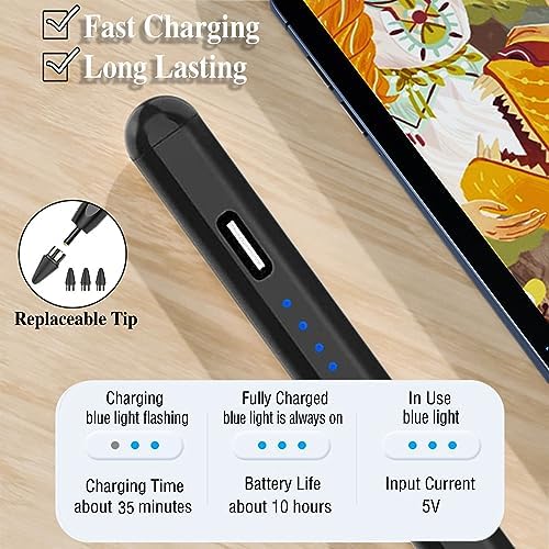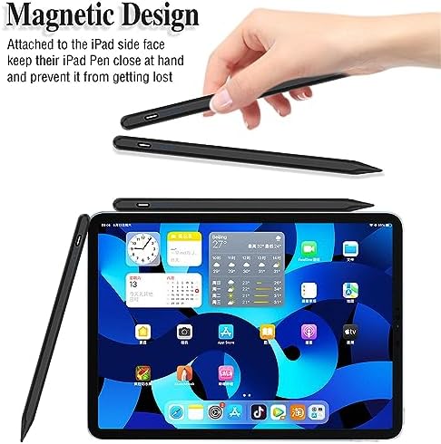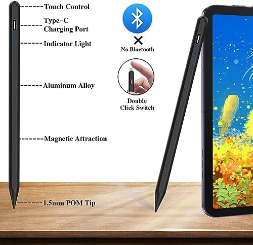 Active Stylus Pens for Touch Screens Rechargeable Tablet Pen POM Tip Magnetic iPad Pencil Universal Stylus Pen for iPad/Pro/Air/Mini/iPhone/Samsung/Lenovo/IOS/Android and Other Smartphone Device-Black