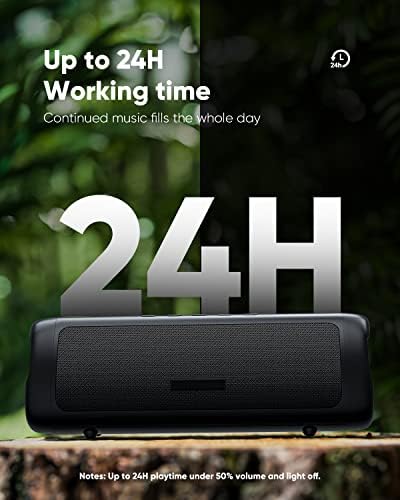 Featuring HD sound, this speaker ensures crystal-clear audio with deep, rich bass. The premium built-in microphone enables hands-free calling, allowing you to take calls without interrupting the music. Enjoy the freedom of movement, thanks to the 24-hour playtime, allowing you to listen to your favorite tracks all day and night without needing to recharge.