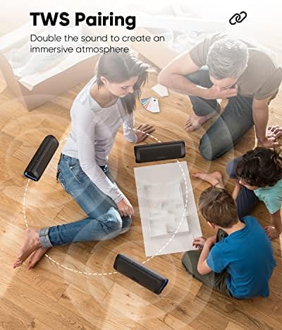 With advanced BT5.3 technology, this portable wireless speaker allows for quick and stable Bluetooth connectivity. Effortlessly connect your smartphone, tablet, or any other Bluetooth-enabled device to stream your favorite tunes. The TWS pairing feature lets you connect two speakers for an even more immersive stereo sound experience.